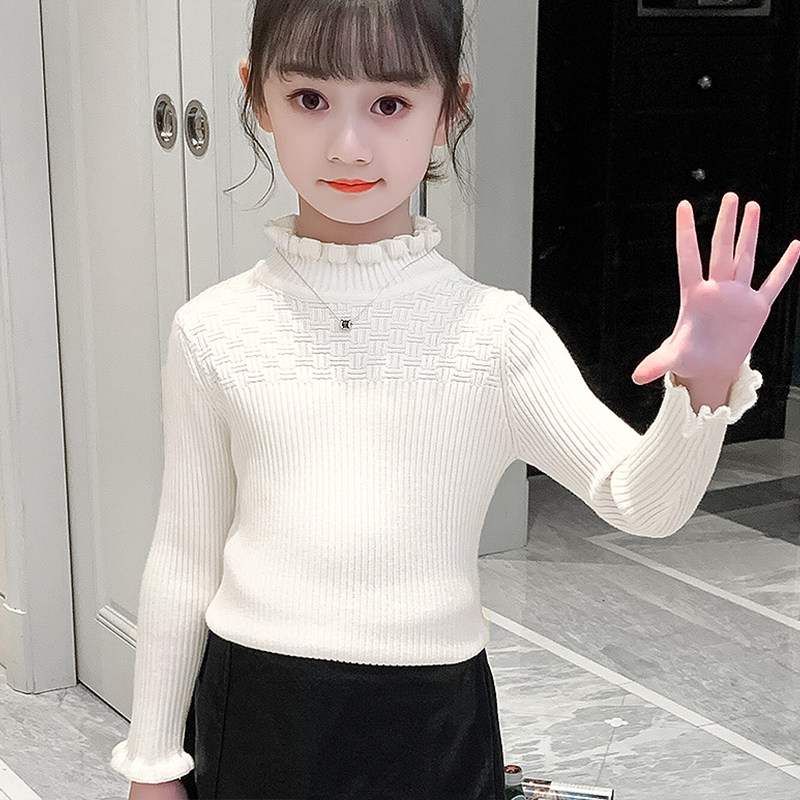[32支高纱]女童打底毛衣大童纯色白色内搭秋冬新款时髦保暖针织衫