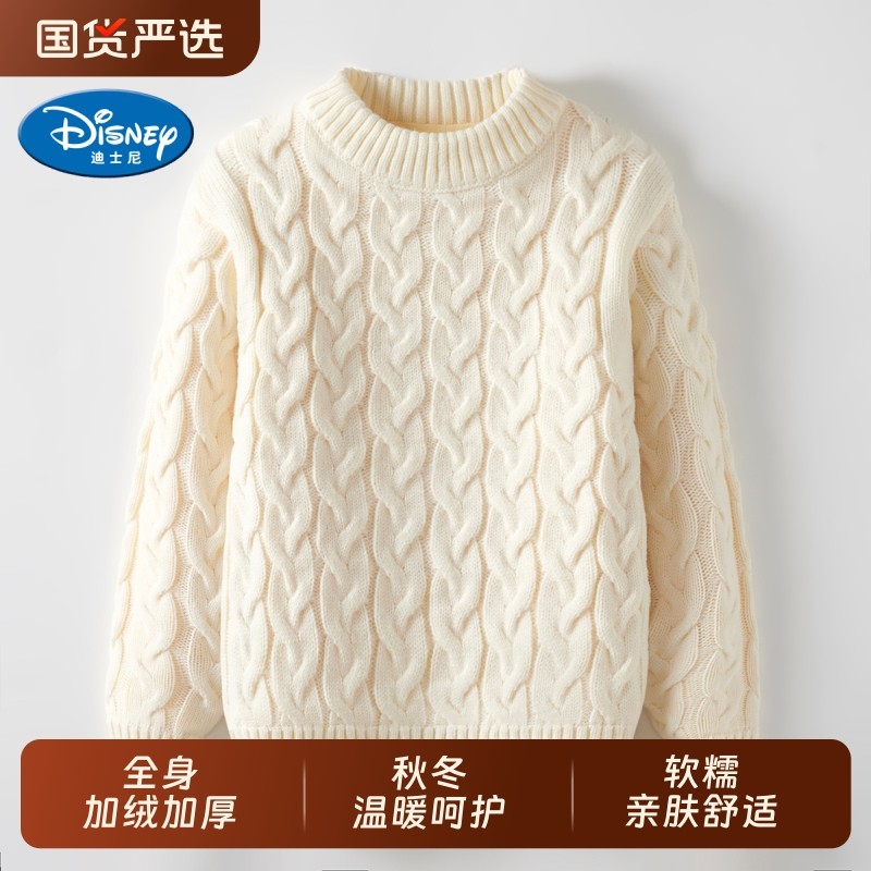 迪士尼女童毛衣2025新款中大童加绒加厚针织衫冬季白色国货红色