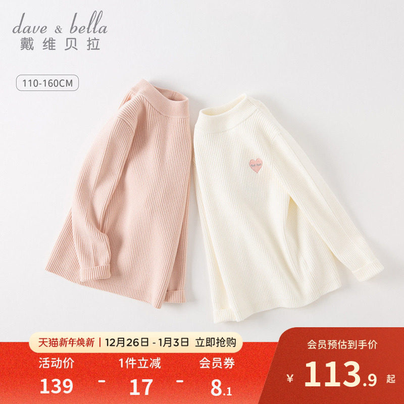 戴维贝拉女童毛衣儿童打底衫宝宝白色线衣女孩针织衫大童上衣童装