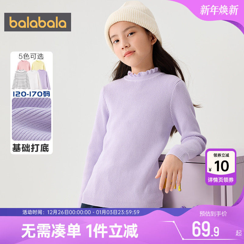 巴拉巴拉女童毛衣中大童针织衫儿童白色打底衫秋冬款童装宝宝上衣