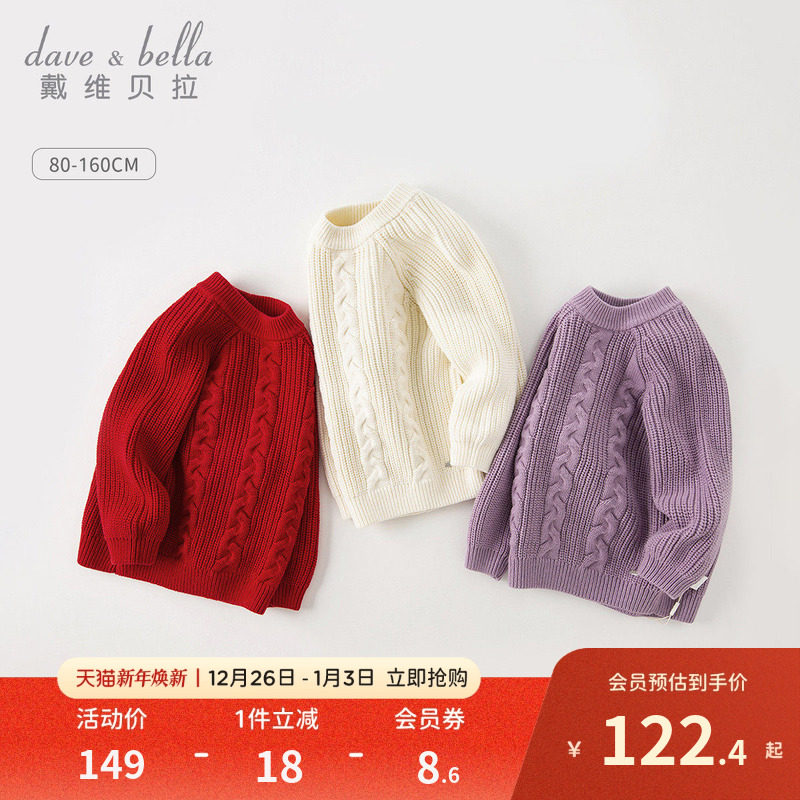 戴维贝拉儿童新年红色毛衣男童女童针织衫衣服宝宝上衣白色童装冬