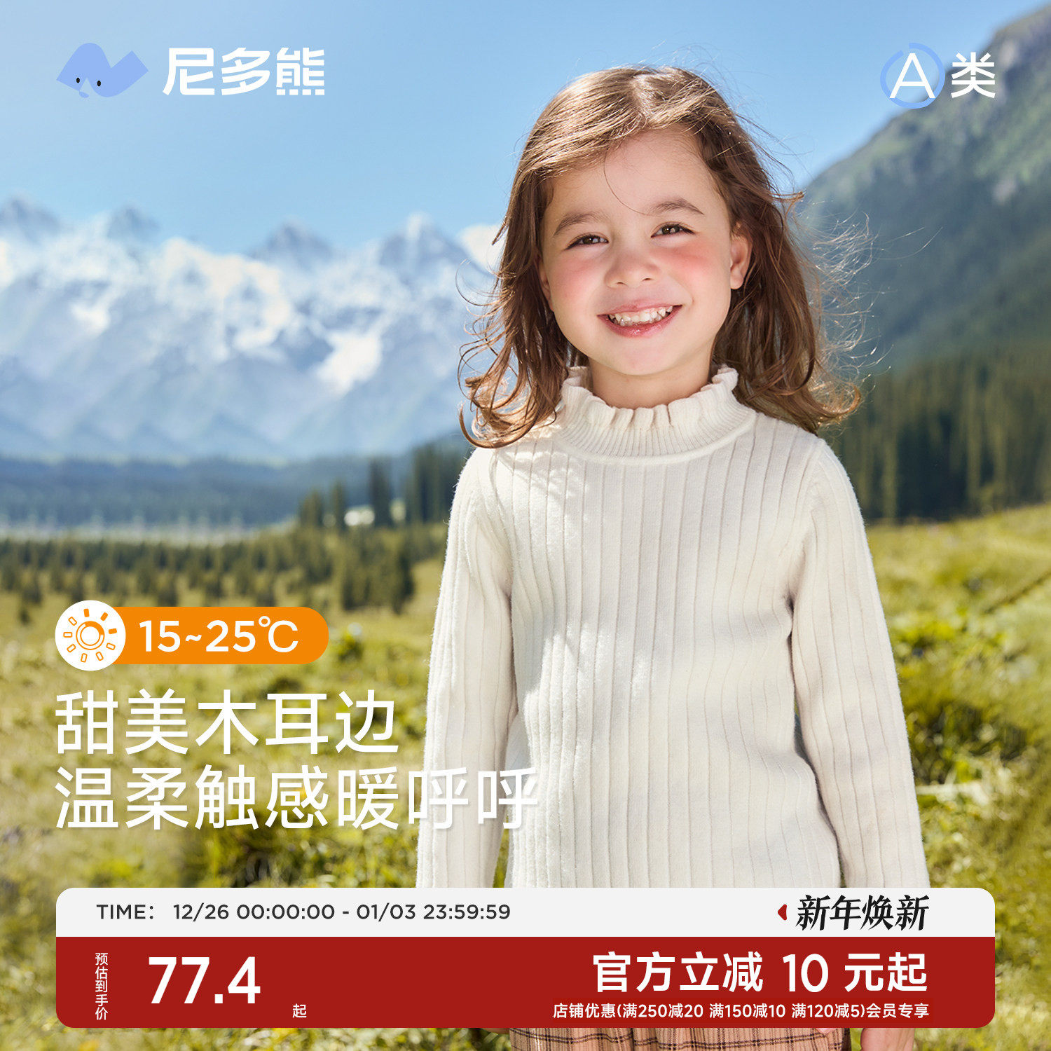 【打底衫】尼多熊25女童针织毛衣儿童秋冬上衣女宝宝白色纯色百搭