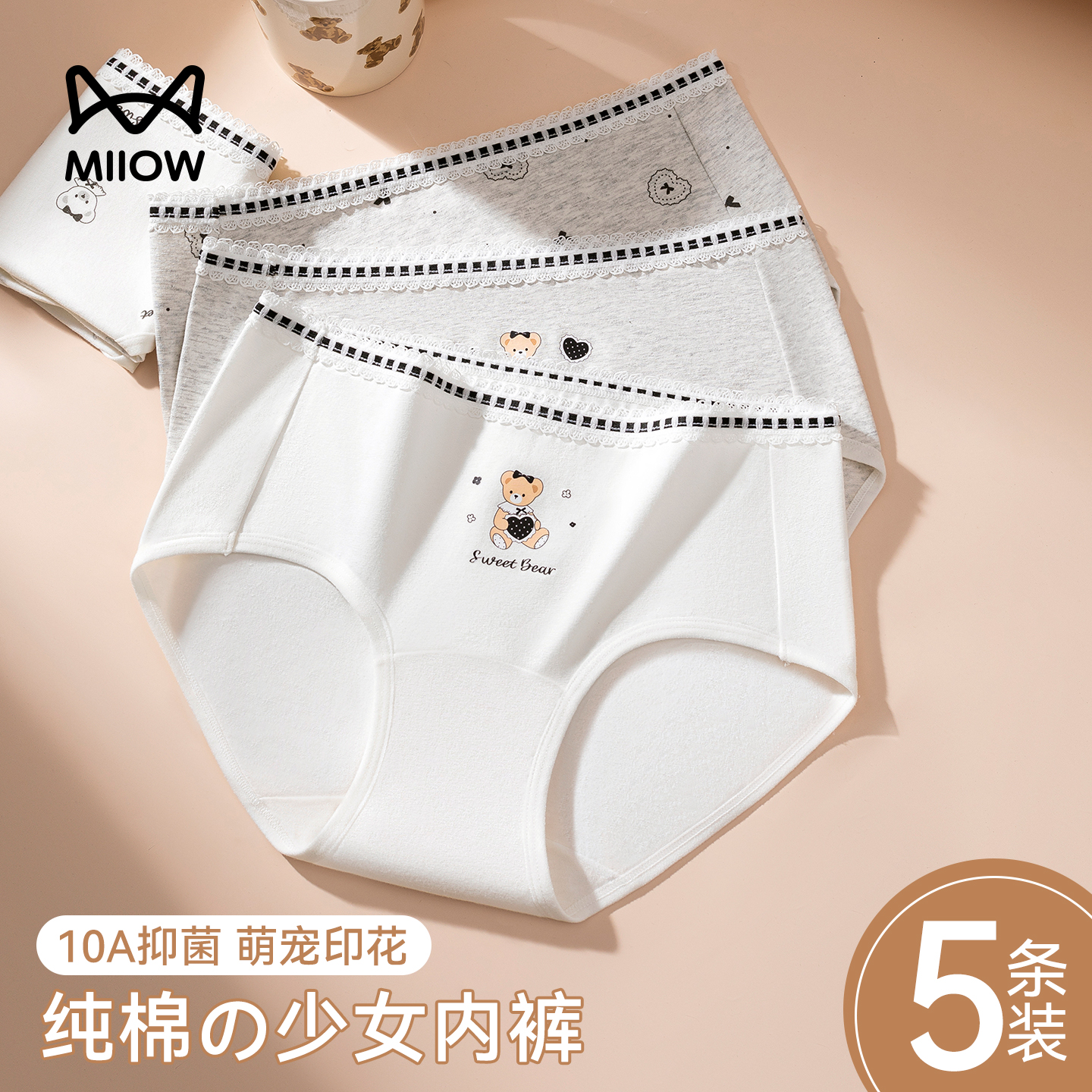 A类棉5条少女纯棉内裤女生中腰日系可爱抗菌学生大码女士夏季薄款