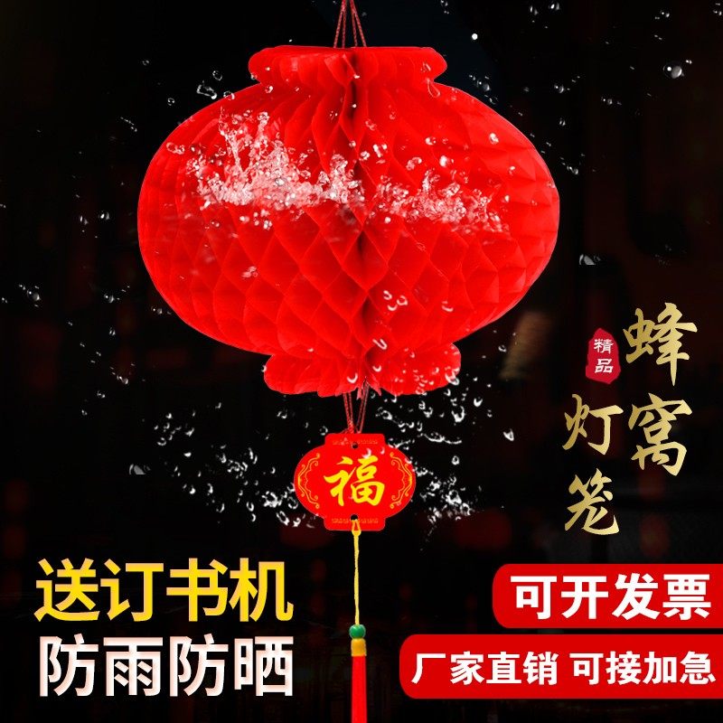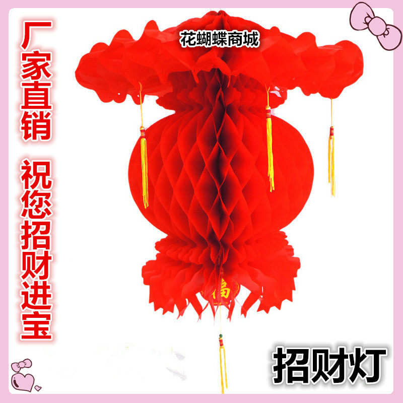 大红招财灯笼 结婚庆婚礼节日装饰灯笼 塑料纸质蜂窝小纸灯笼包邮