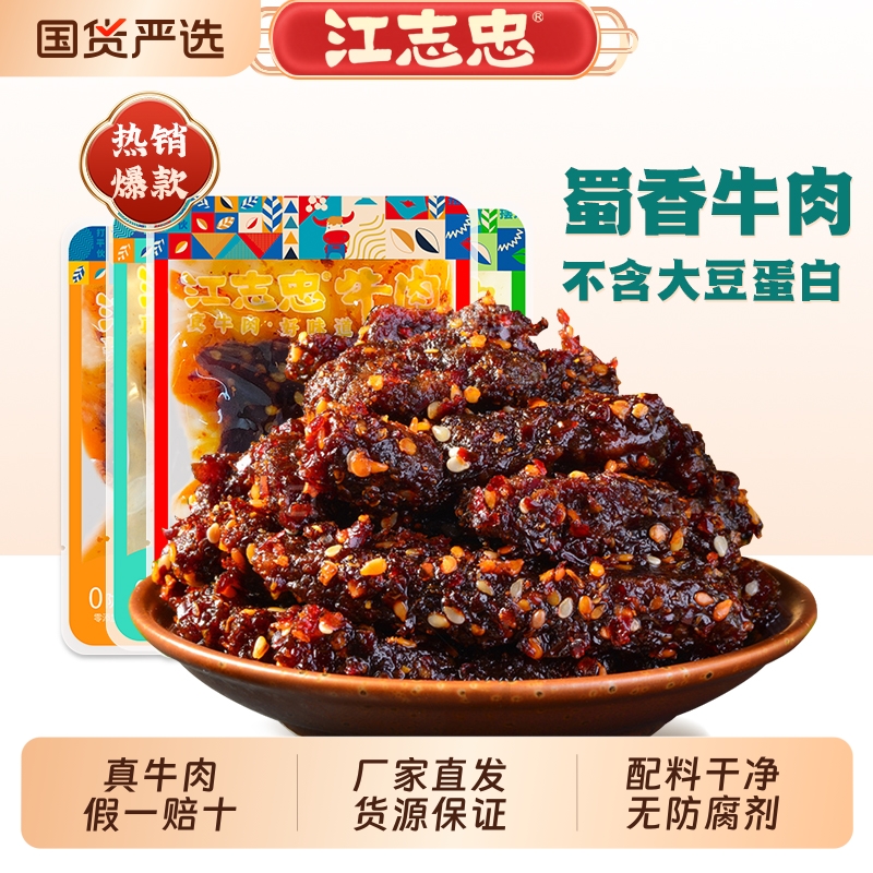 江志忠牛肉38g*8袋香辣五香麻辣藤椒牛肉干四川特产休闲即食零食