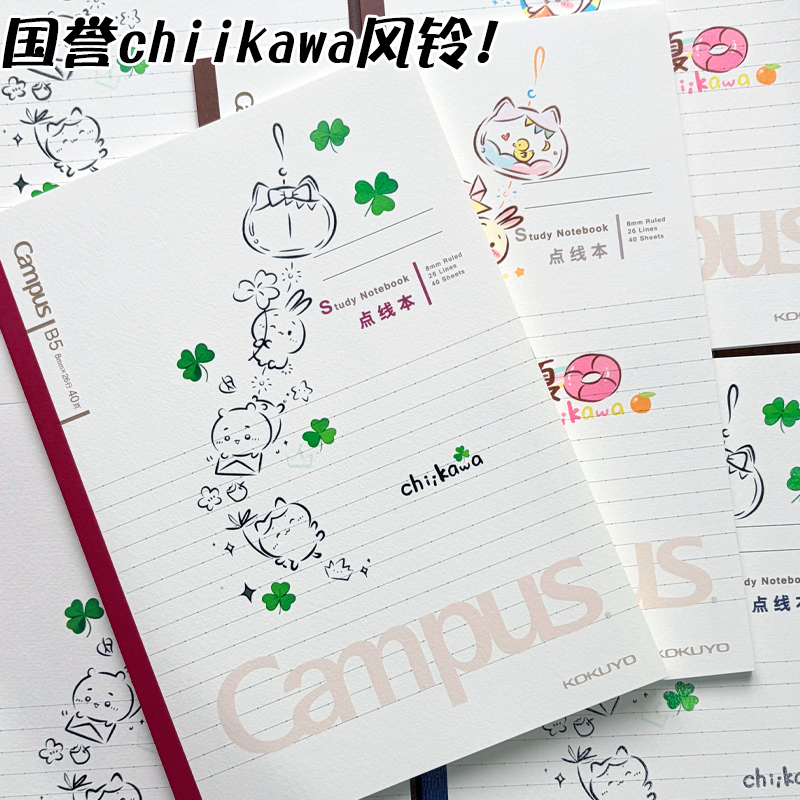 新款国誉Campus吉伊卡哇Chiikawa联名无线装订笔记本子横线B5学生