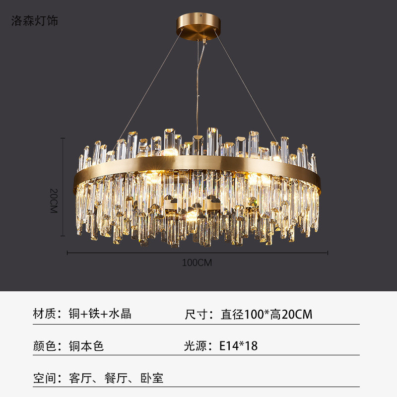 轻奢后现代简约餐厅卧室灯具客厅水晶全铜吊灯北欧别墅港式灯房间