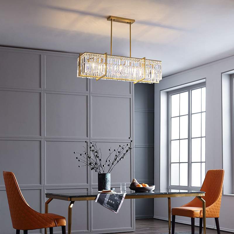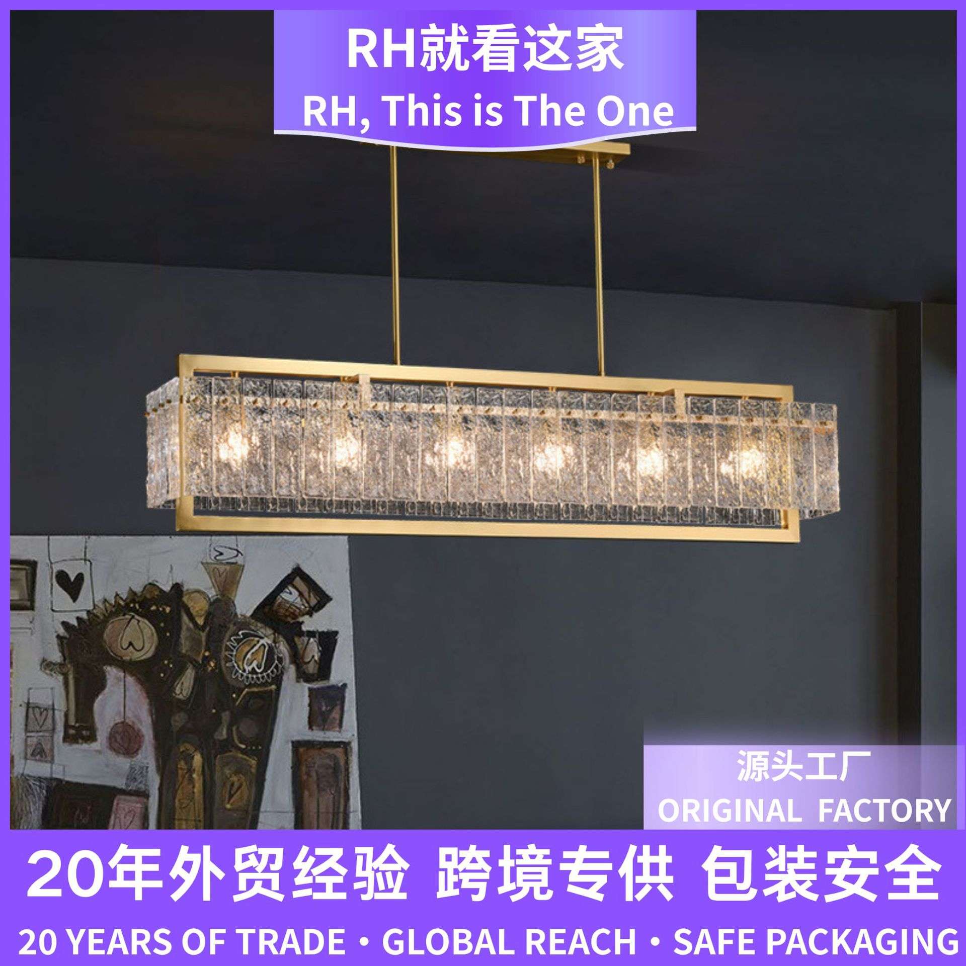 Crystal light北欧现代轻奢水晶全铜吊灯餐厅吧台长方形茶台客厅