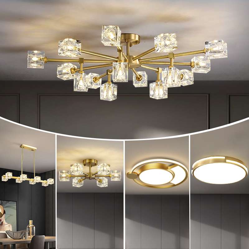 新款轻奢灯具客厅后现代简约别墅水晶全铜吊灯北欧卧室灯餐厅灯饰