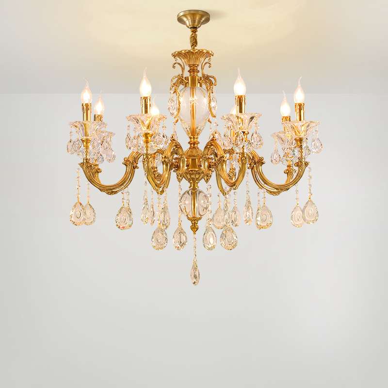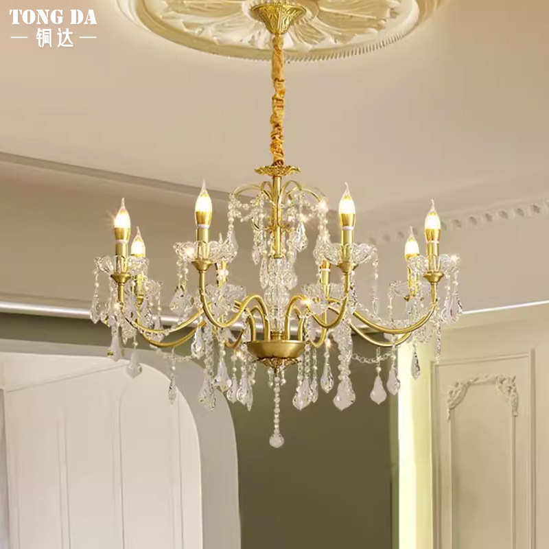 法式水晶全铜吊灯2024新款轻奢美式客厅蜡烛灯高级感灯具简约卧室