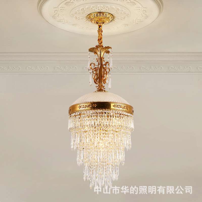 法式水晶全铜吊灯欧式轻奢客厅灯餐厅卧室书房复古别墅楼梯房灯具