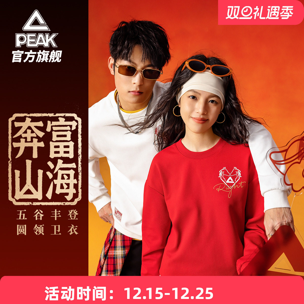 PEAK匹克官方卫衣男女新年款圆领长袖宽松百搭套头衫运动卫衣