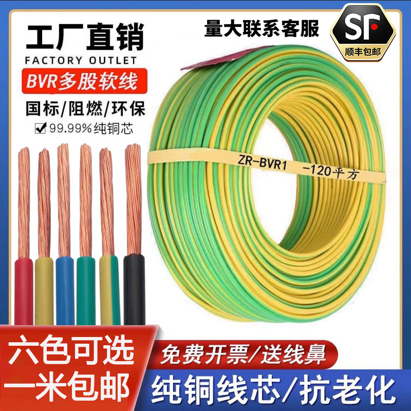 BVR国标纯铜多股软电线接地线10 16 25 35 50 70 95 120平方铜线
