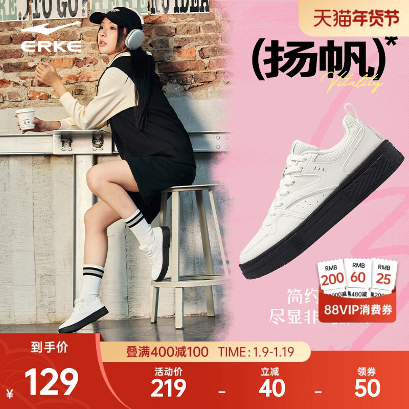 漫游2鸿星尔克女板鞋冬季厚底增高滑板鞋休闲运动鞋百搭女士鞋子