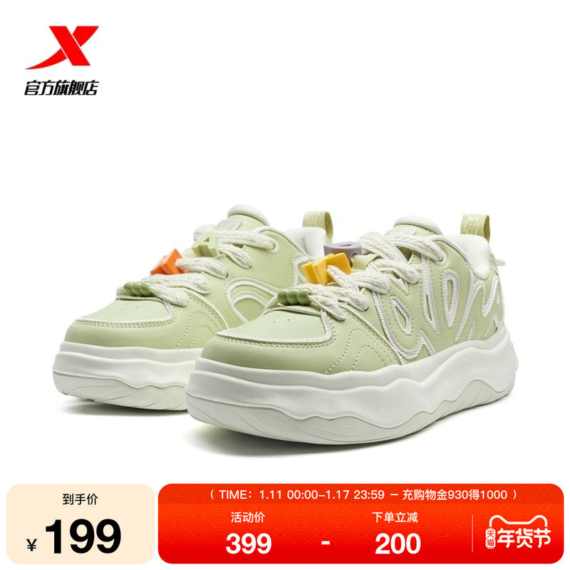 特步云帆|板鞋潮流女鞋2025冬季增高休闲鞋运动鞋低帮鞋子小白鞋