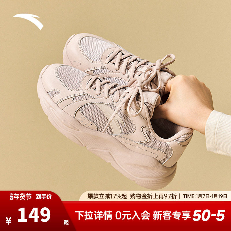 安踏不羁休闲鞋女子冬季厚底百搭增高软底老爹鞋学生小白鞋运动鞋