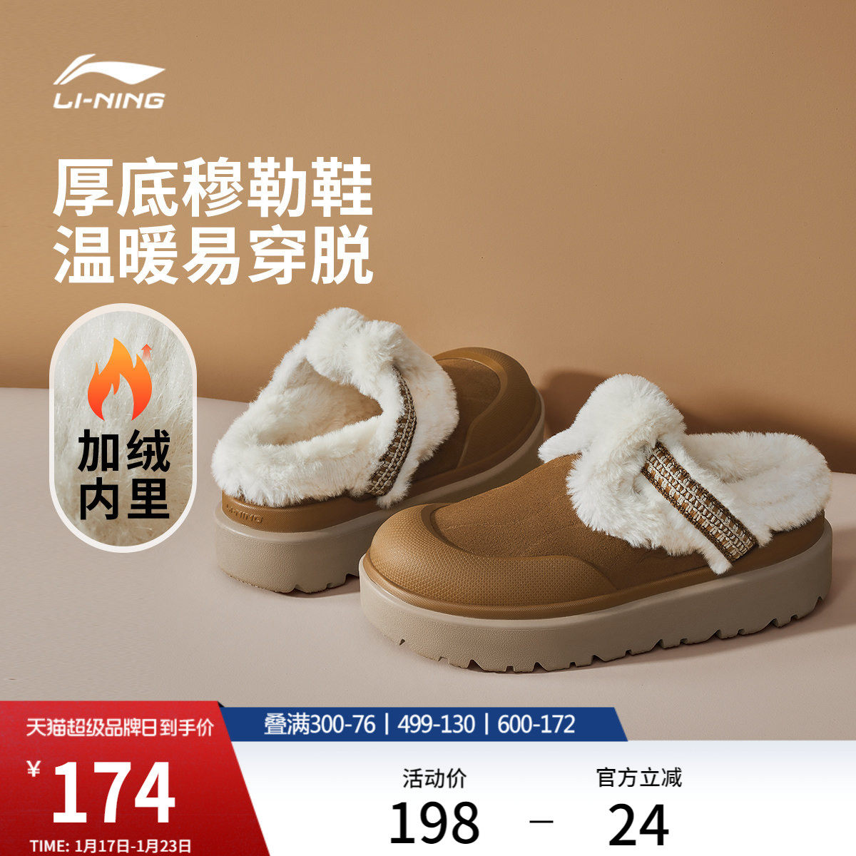 李宁可可丨休闲鞋女鞋冬季加绒保暖棉鞋厚底增高博肯鞋百搭运动鞋
