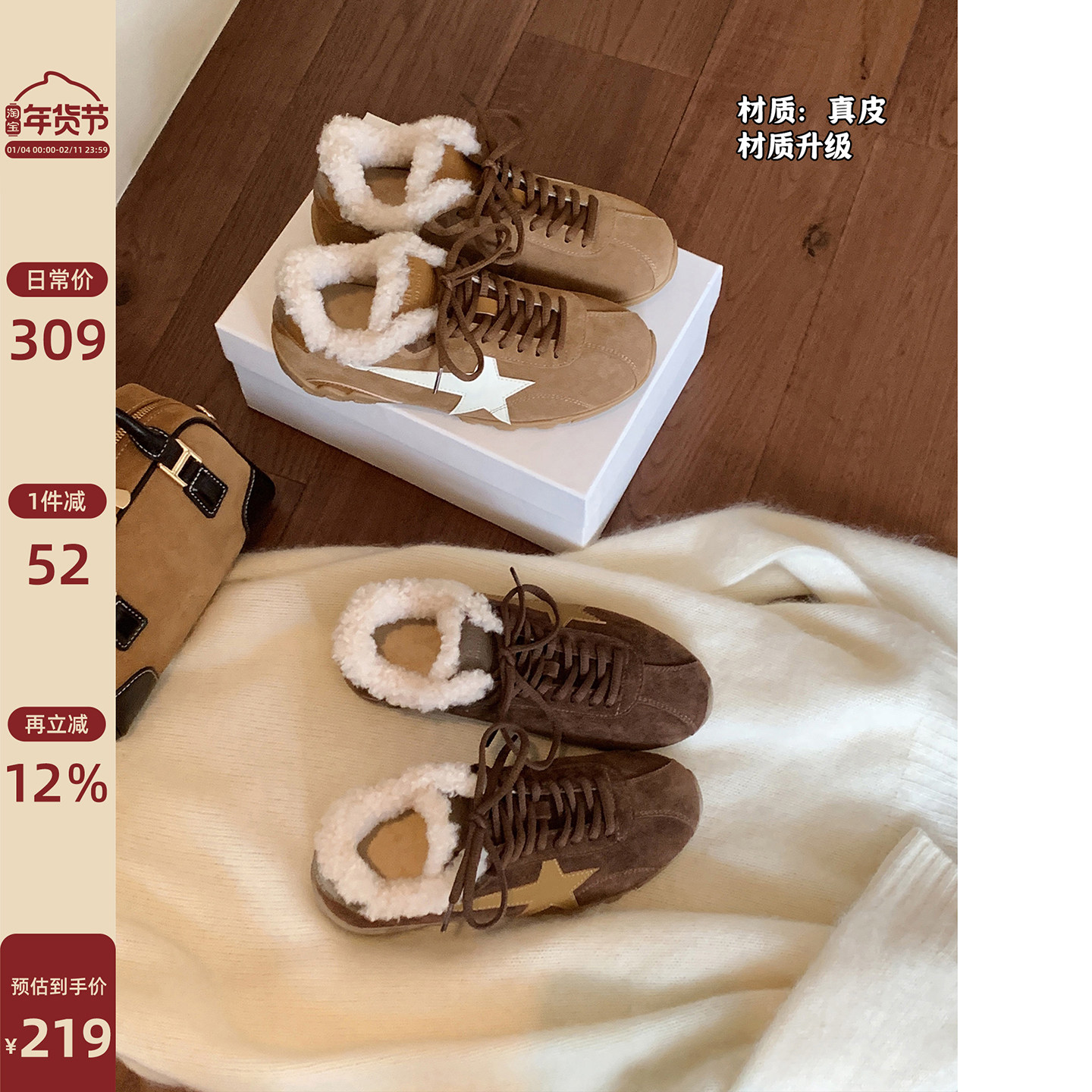 Chio2nd南风 4CM增高德训鞋秋冬女鞋2025超火韩系鞋子加绒运动鞋