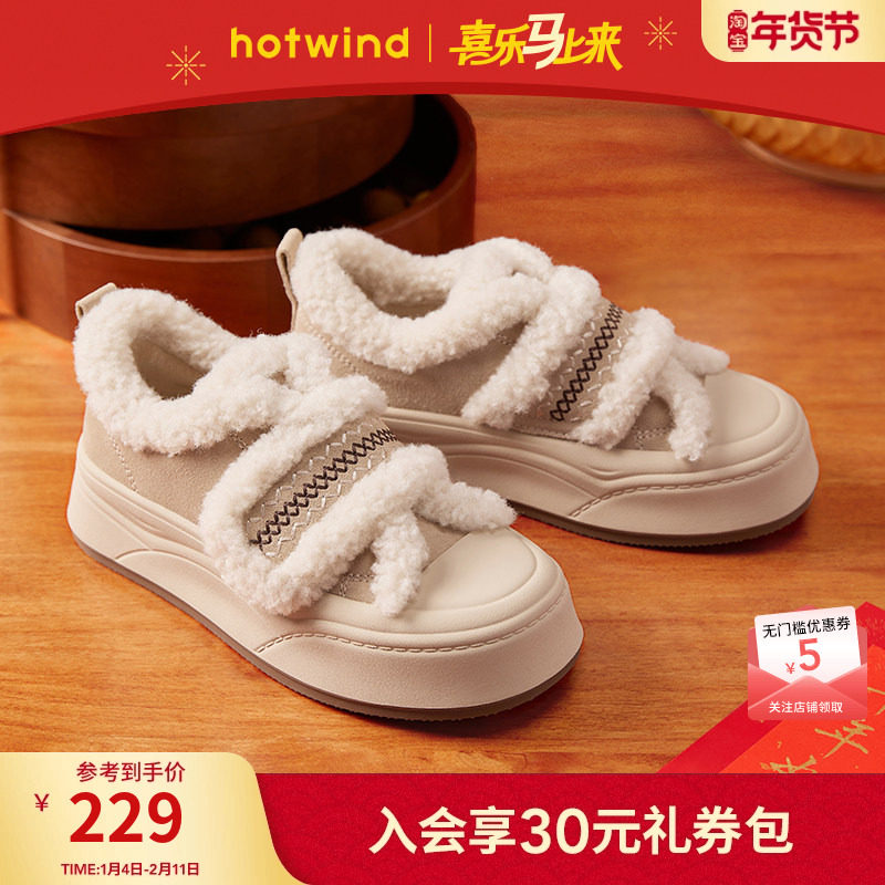 热风厚底毛毛鞋女2025年冬季新款加绒休闲鞋增高板鞋魔术贴女棉鞋