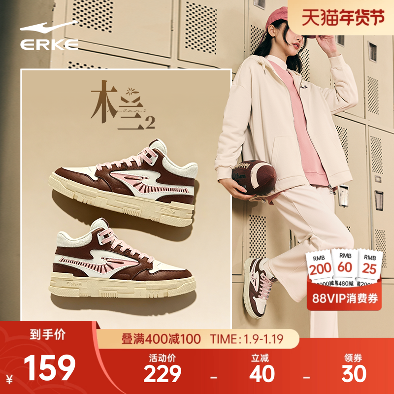 木兰鸿星尔克女鞋冬季新款板鞋厚底增高休闲鞋高帮鞋子百搭运动鞋
