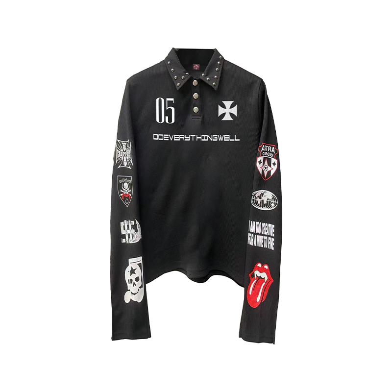 DETW 24AW原创“红星徽章”暗黑朋克铆钉*翻领卫衣男女长袖POLO衫