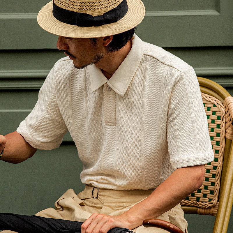 SOARIN复古风意式针织polo衫男 夏季水波纹休闲保罗衫翻领短袖T恤