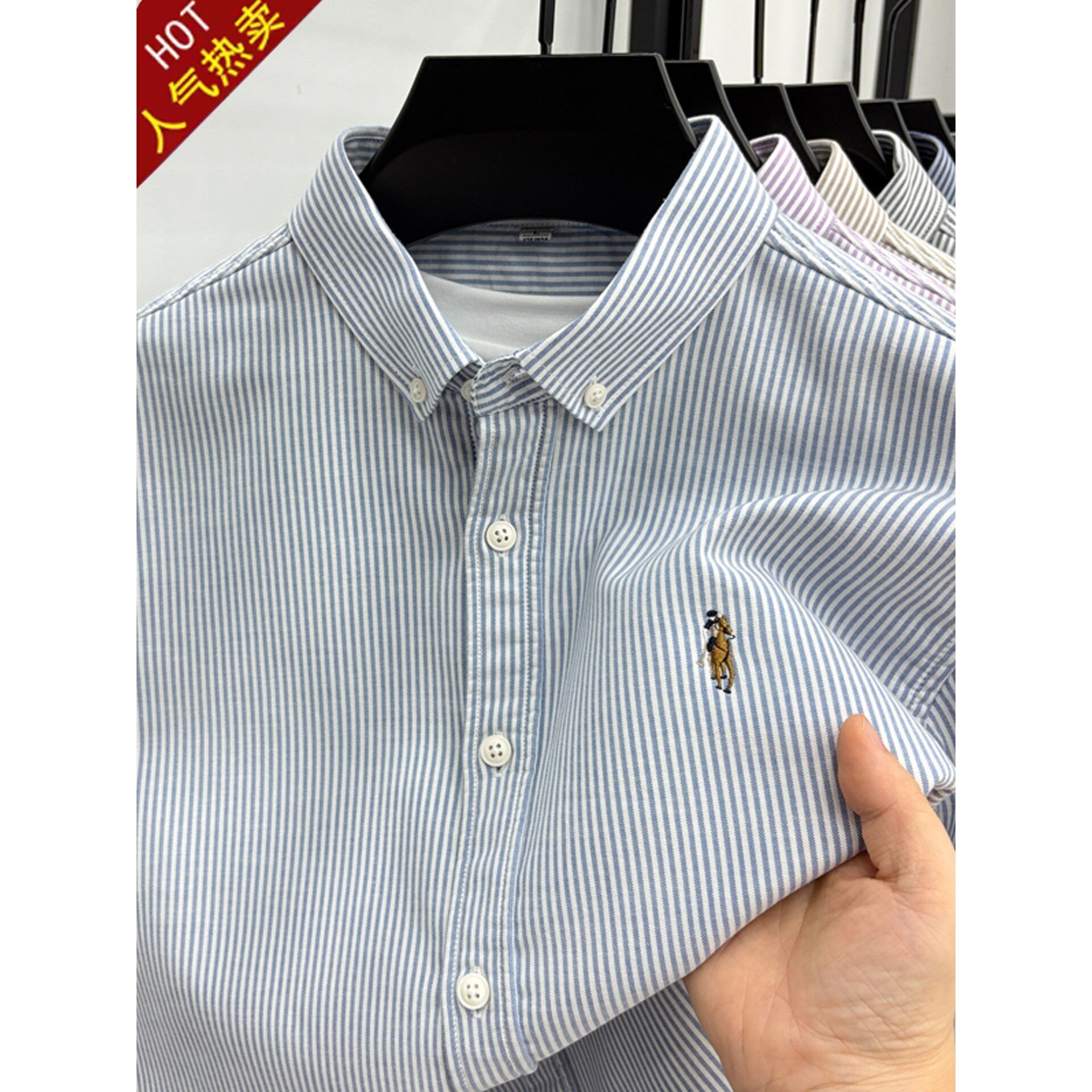 保罗100%纯棉男士牛津纺长袖衬衫中青年休闲纯色全棉衬衣大码男装