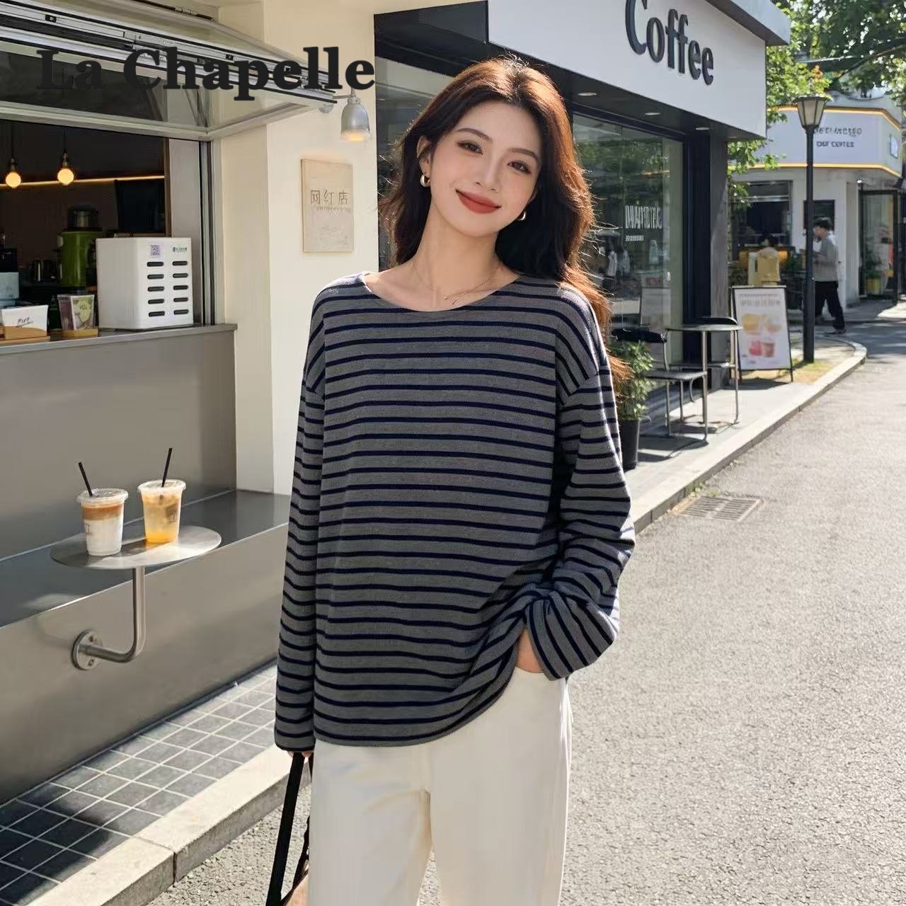 拉夏贝尔好看的条纹内搭打底衫女2026新款小众不撞款长袖t恤上衣