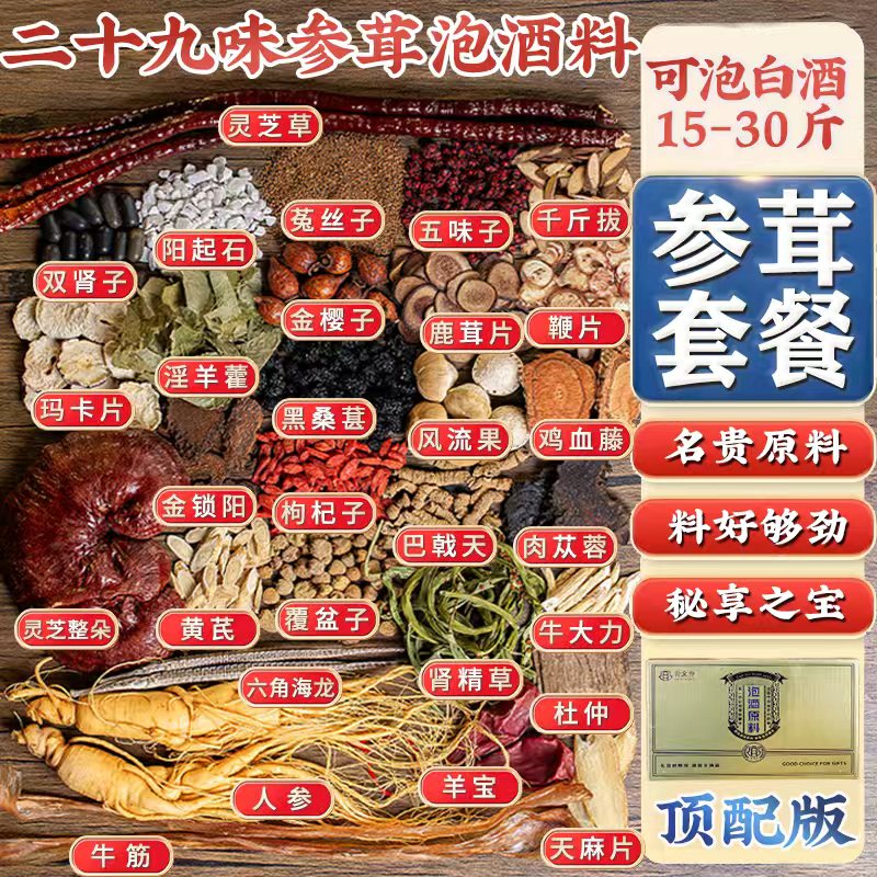 南京同仁堂泡酒专用葯材男十全肾人参鹿鞭玛咖泡酒料大补枸杞补气