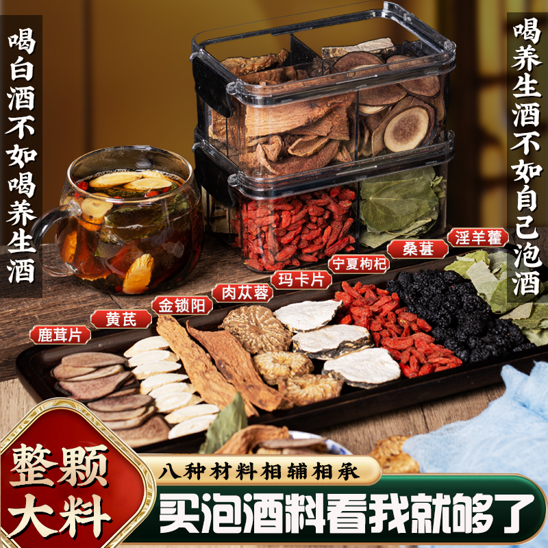 泡酒料人参鹿茸肉苁蓉锁阳淫羊藿玛咖菟丝子枸杞专用泡酒的中材药