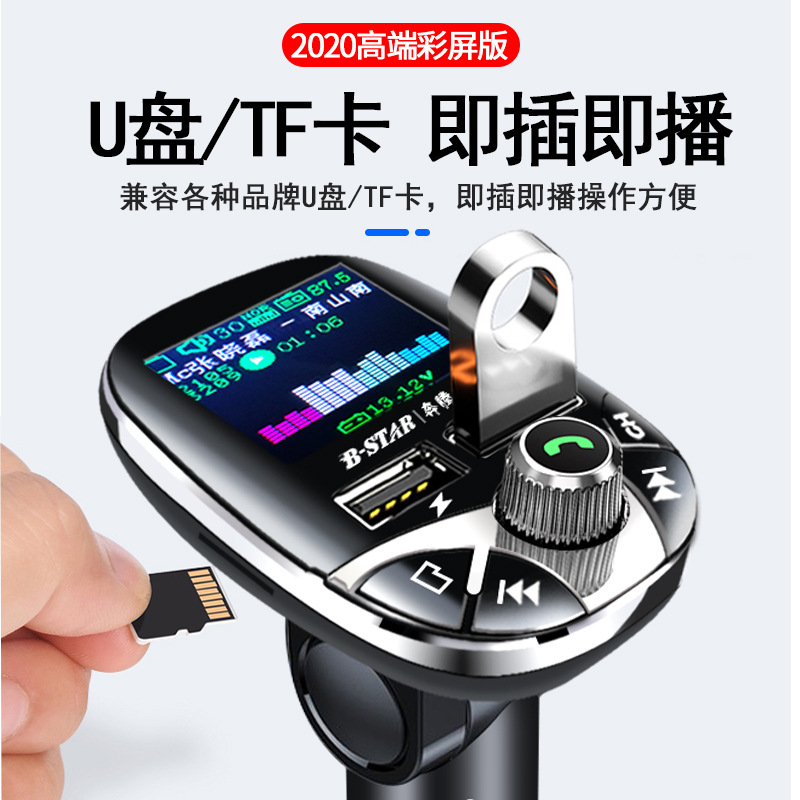 彩屏车载MP3播放器U盘无损蓝牙接收器汽车免提电话车载快充点烟器