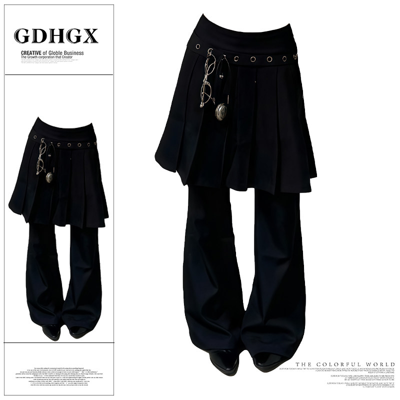 美式街头黑色屁帘百褶裙裤女款秋冬新款松弛感宽松慵懒风休闲裤子