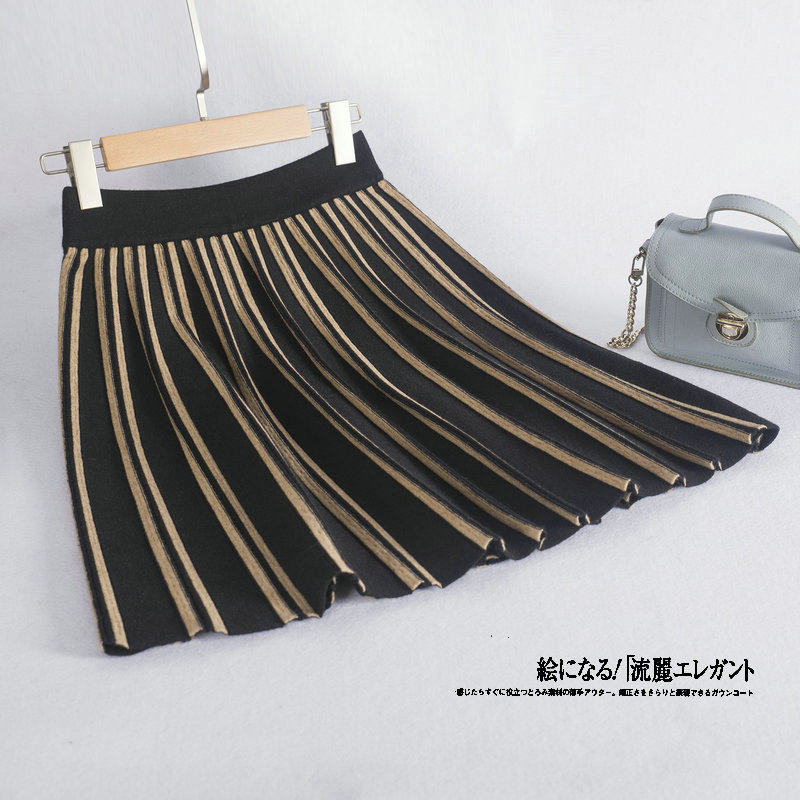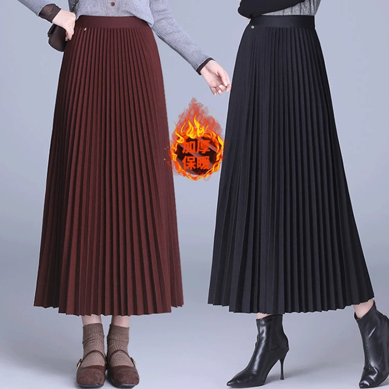 女款a字裙百褶裙松紧腰针织半身裙秋冬天裙子女冬裙长裙半身群子