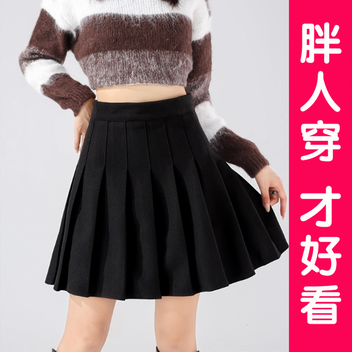 大码毛呢百褶裙秋冬季女款高腰显瘦a字短裙百搭咖色a字半身裙胖mm