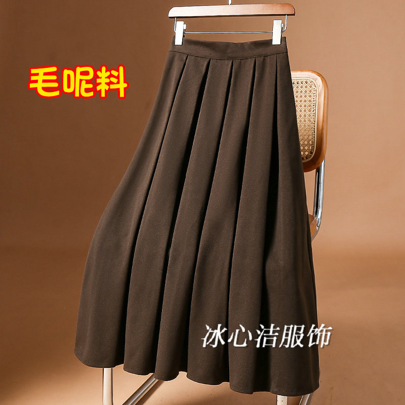 毛呢半身裙女款秋冬款2025新款加厚高腰遮胯a字裙中长款百褶伞裙