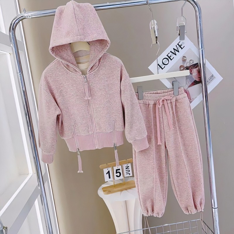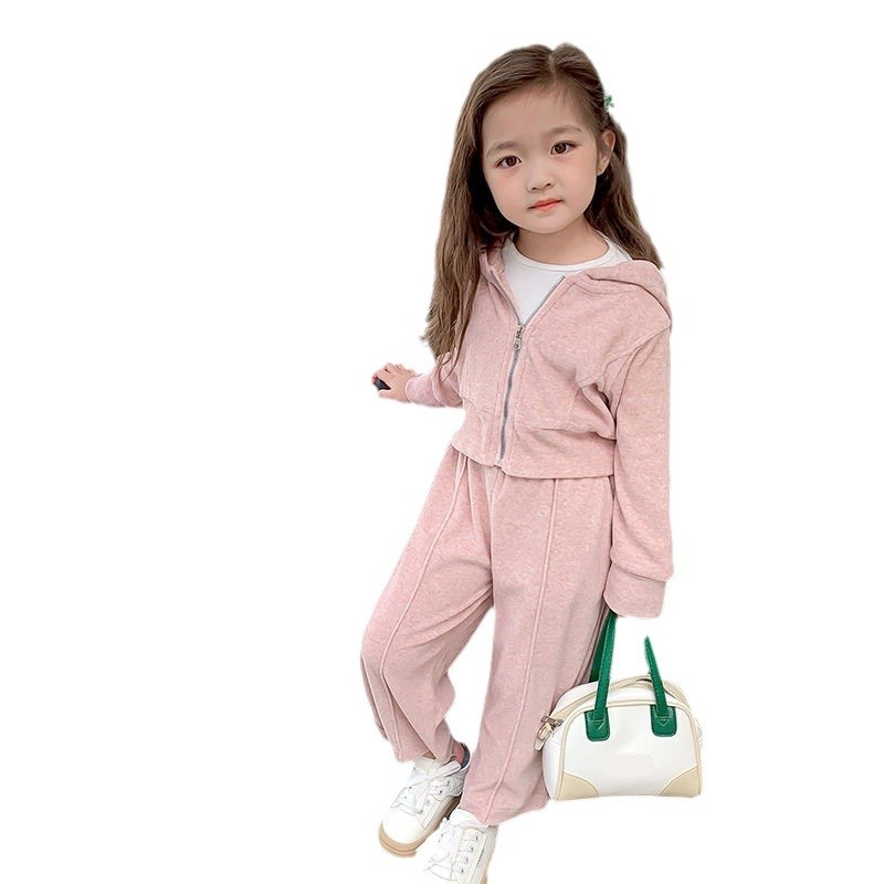 抖音米小洛童装2023春秋季女童秋款洋派休闲韩版纯色连帽时尚套装