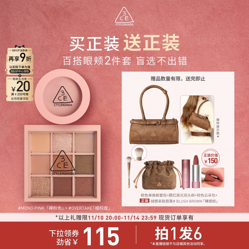【达人直播】3CE眼影盘腮红套装九宫格橘棕盘裸粉色百搭NHO