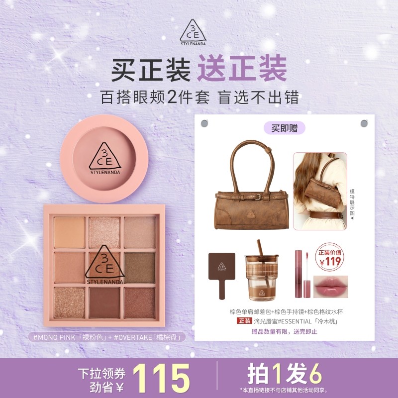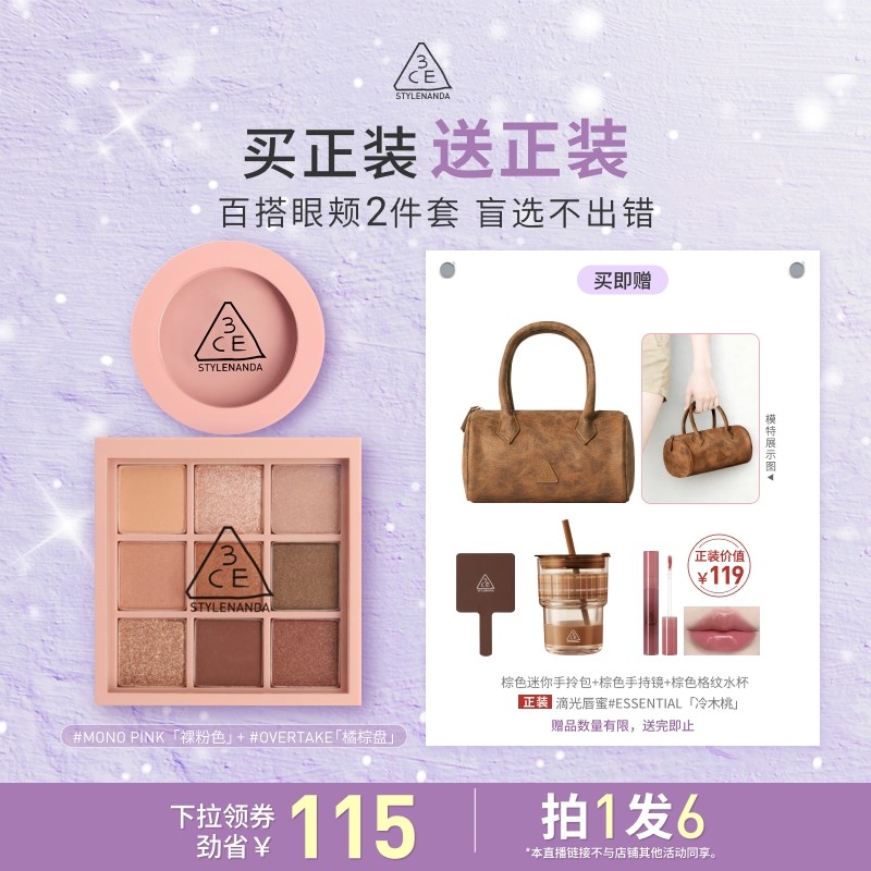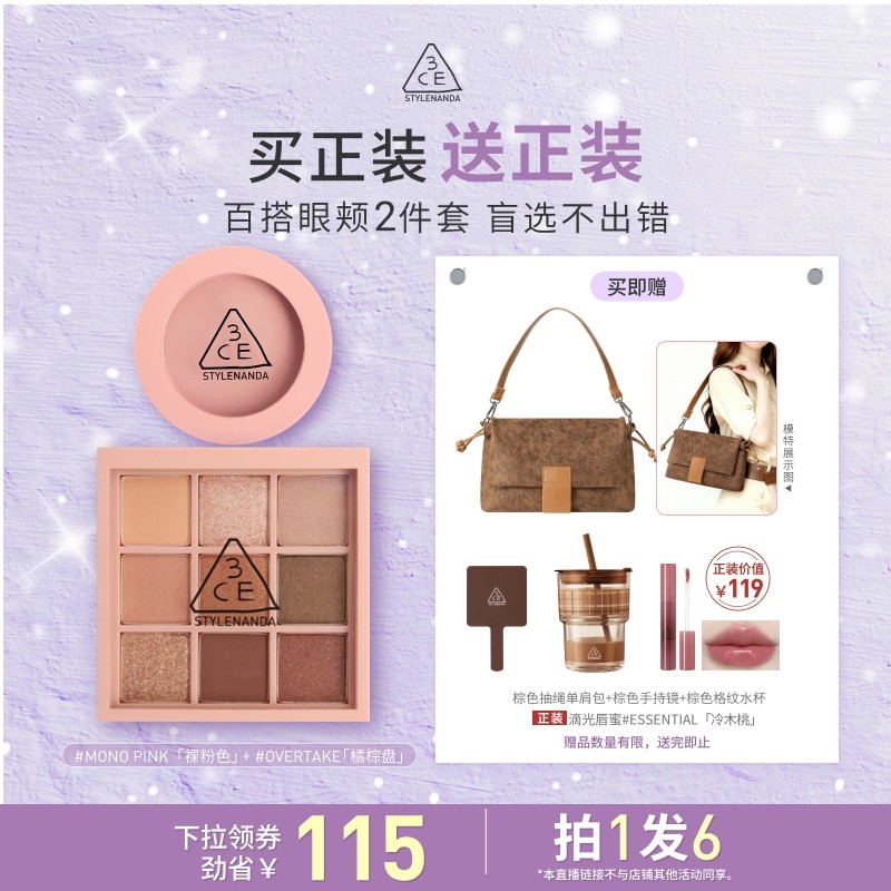 【达人直播】3CE十二色眼影腮红套装水泥杏粉盘裸粉色蜜桃橘NHO