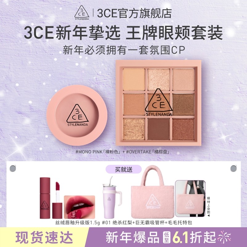 【圣诞礼物】3CE化妆品套装 口红眼影唇釉腮红彩妆礼盒女官方