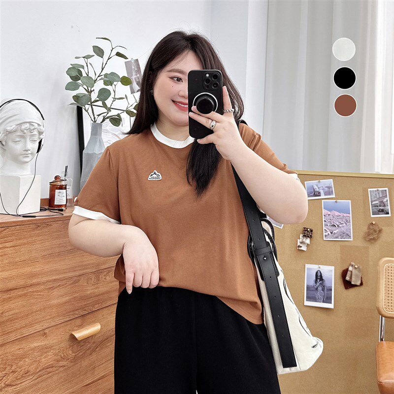 胖mm秋冬精致磨毛短袖打底衫木子理想大码女舒服T恤显瘦内搭200斤
