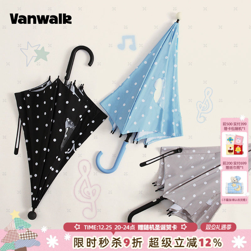 VANWALK自制可爱长柄加厚透明雨伞女便携高颜值学生波点直杆伞ins