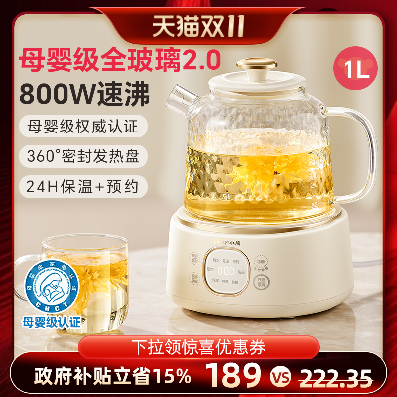 九阳全玻璃养生壶家用恒温多功能小型办公室炖煮花茶烧水壶纯玻璃