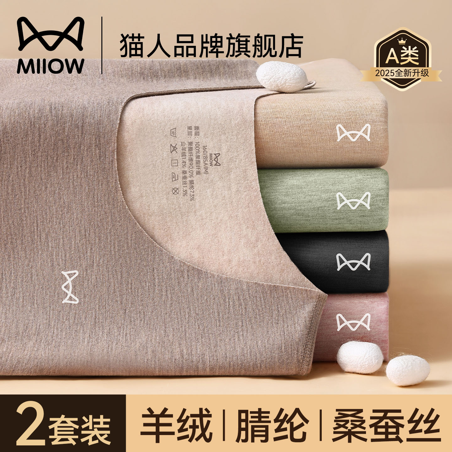 猫人保暖内衣女款套装2025新款加厚绒德打底贴身秋衣秋裤冬季上衣