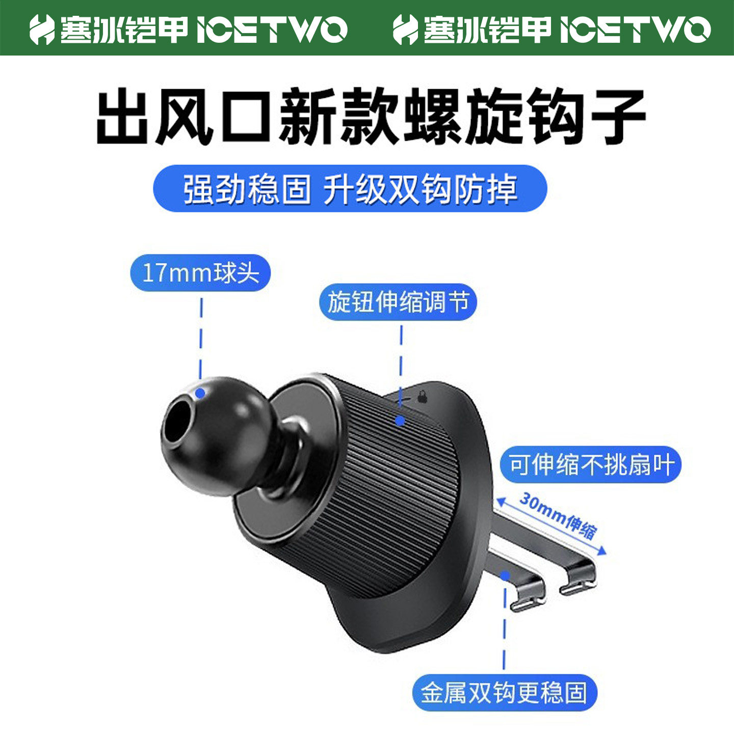 2026新款车载手机支架出风口汽车通用导航支撑架螺旋挂钩式防抖夹