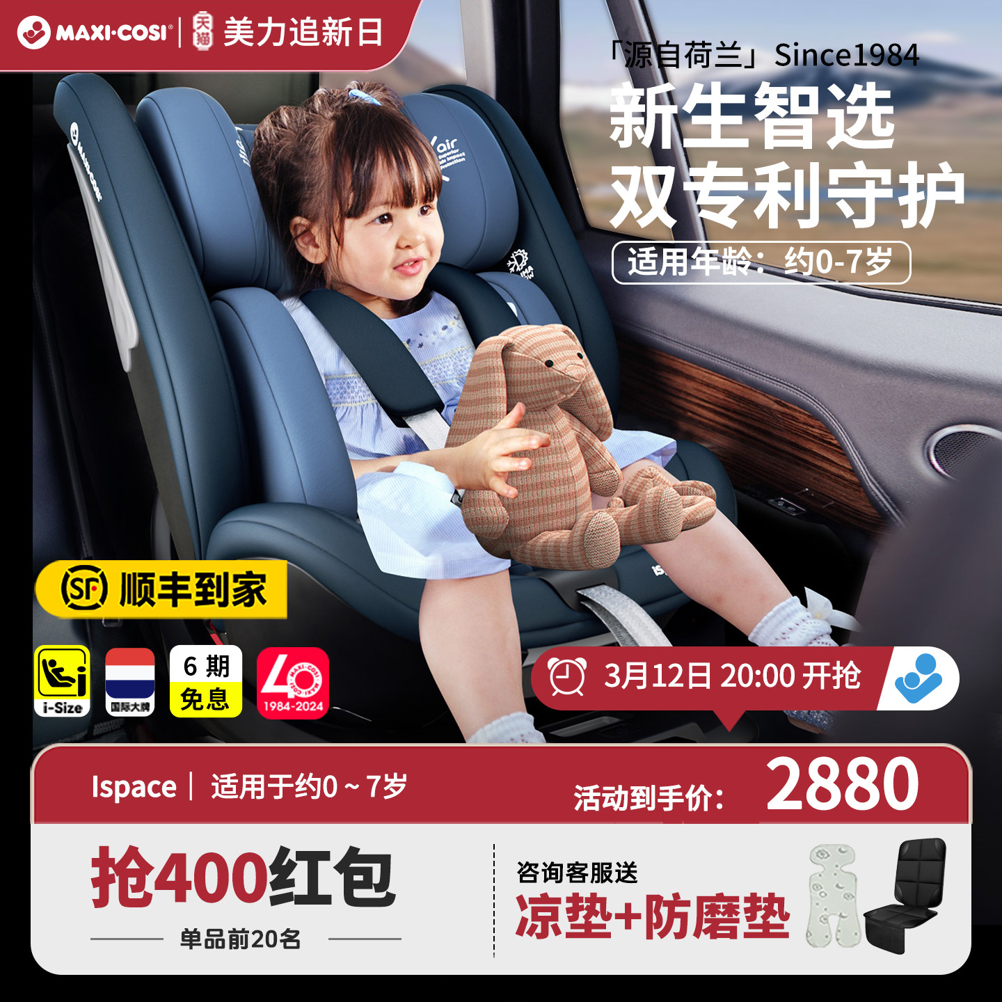 Maxicosi迈可适ispace迈越星0-7岁儿童汽车安全座椅通风透气旋转