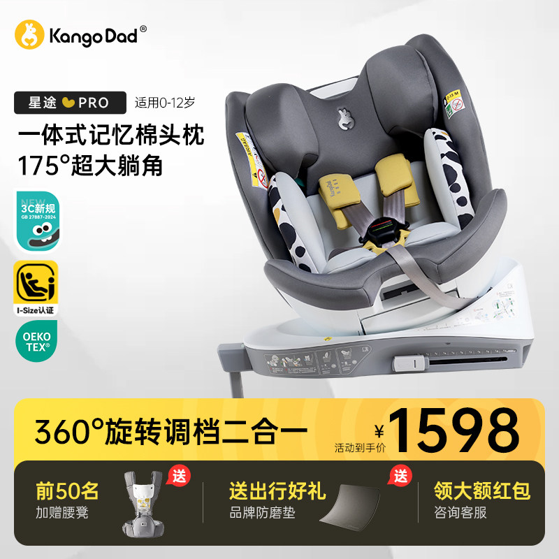 【新国标】袋鼠爸爸星途pro儿童汽车安全座椅可旋转宝宝婴儿0-12