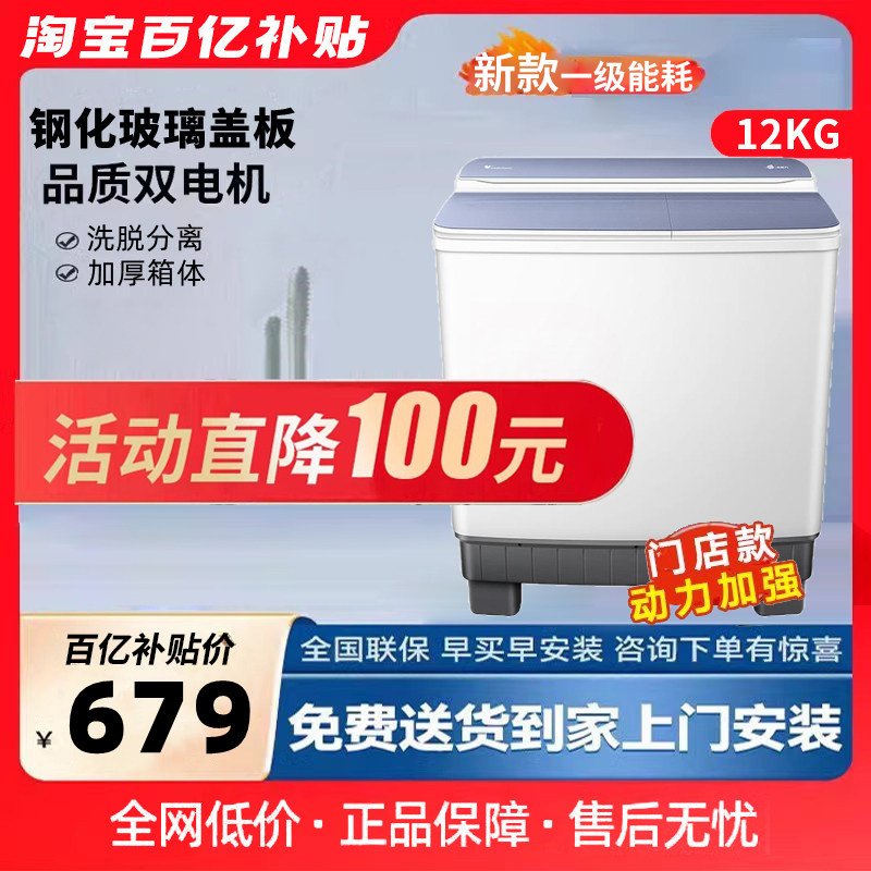 【补贴15%】海尔家用12公斤大容量双缸洗衣机半自动双动力强去污