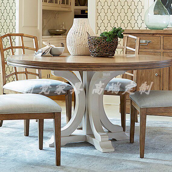 美式餐桌美式原木色实木餐桌别墅工业风圆形1.3米1.5米大圆桌定制