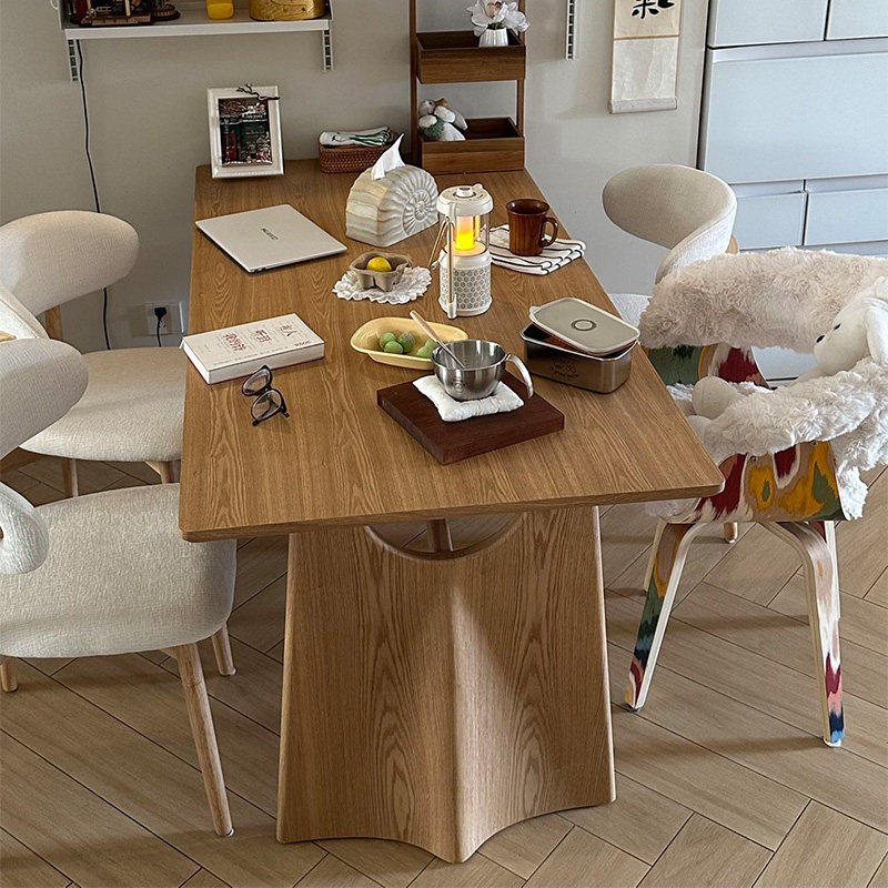 奥古斯特实木餐桌长方形家用小户型原木色奶油风2025新款大板餐桌