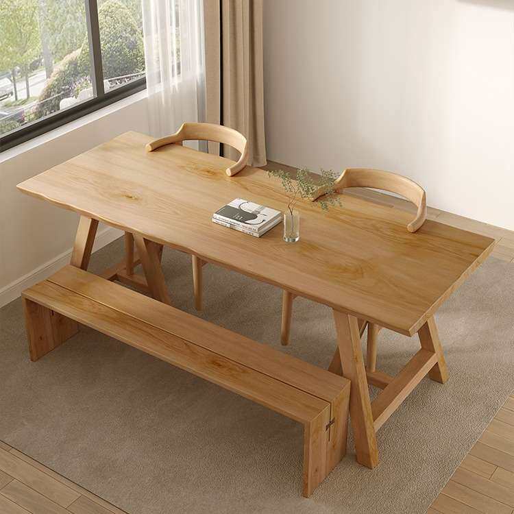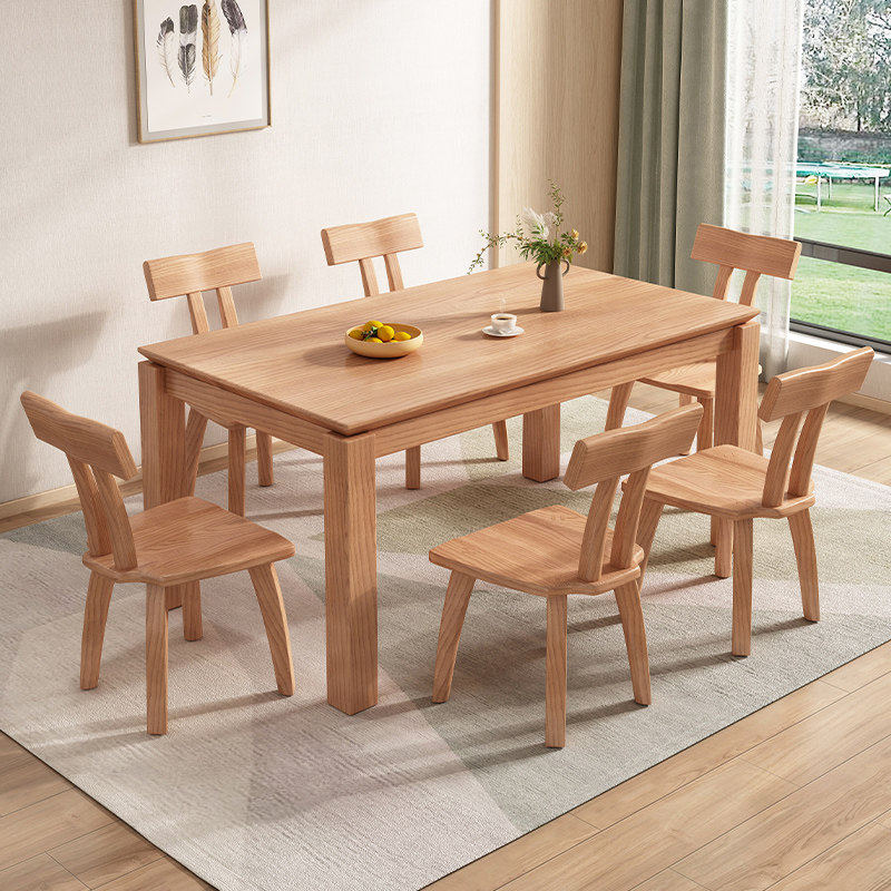 全实木餐桌原木色饭桌吃饭桌子加厚家用简约现代长方形实木餐桌椅